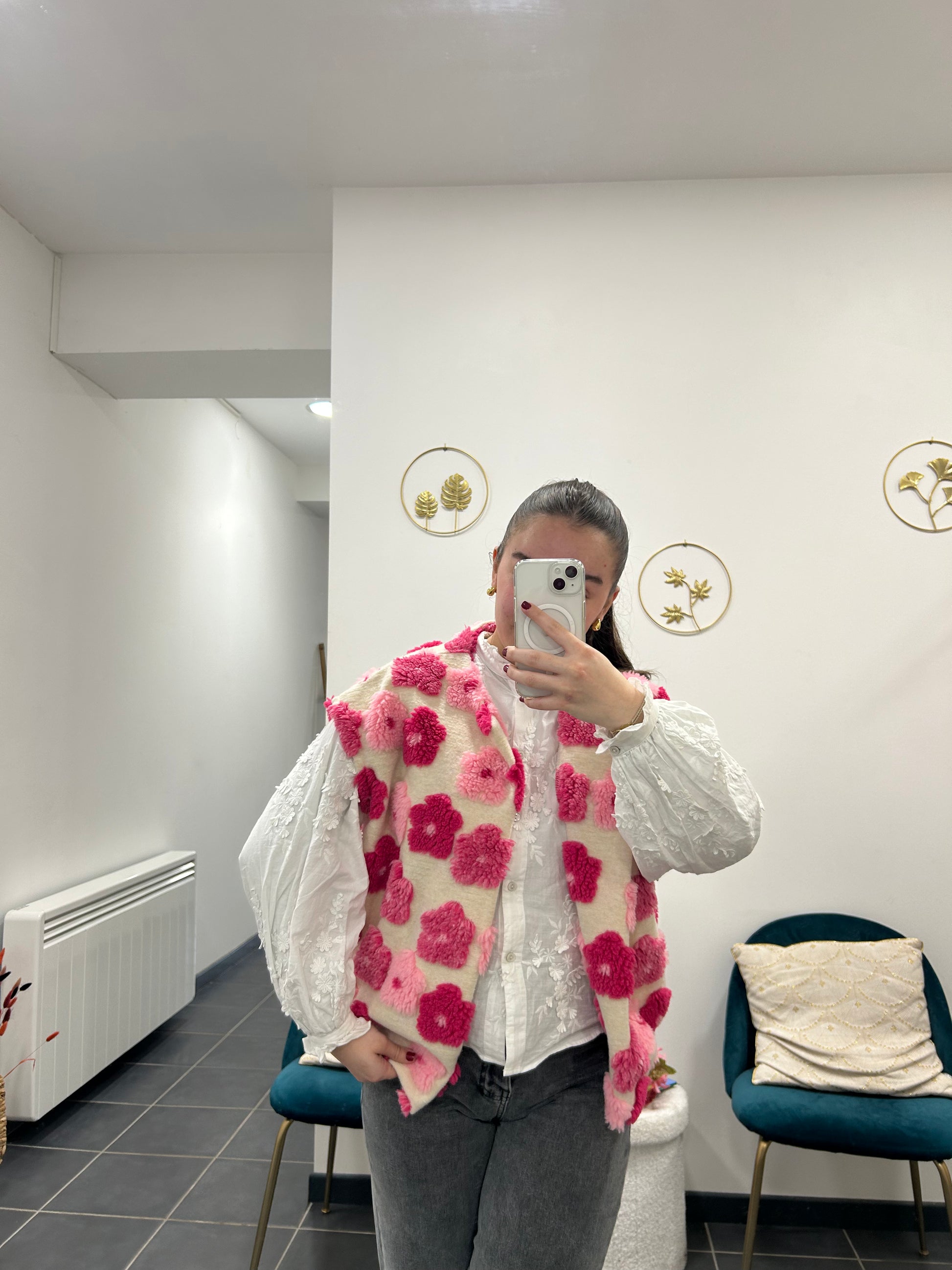 Ce gilet sans manches à fleurs roses apporte une touche douce et féminine à votre tenue. Son motif floral donne du style tout en restant facile à porter au quotidien. Il se superpose facilement sur un t-shirt, une chemise ou un pull fin pour compléter le look avec légèreté.À propos du produit :