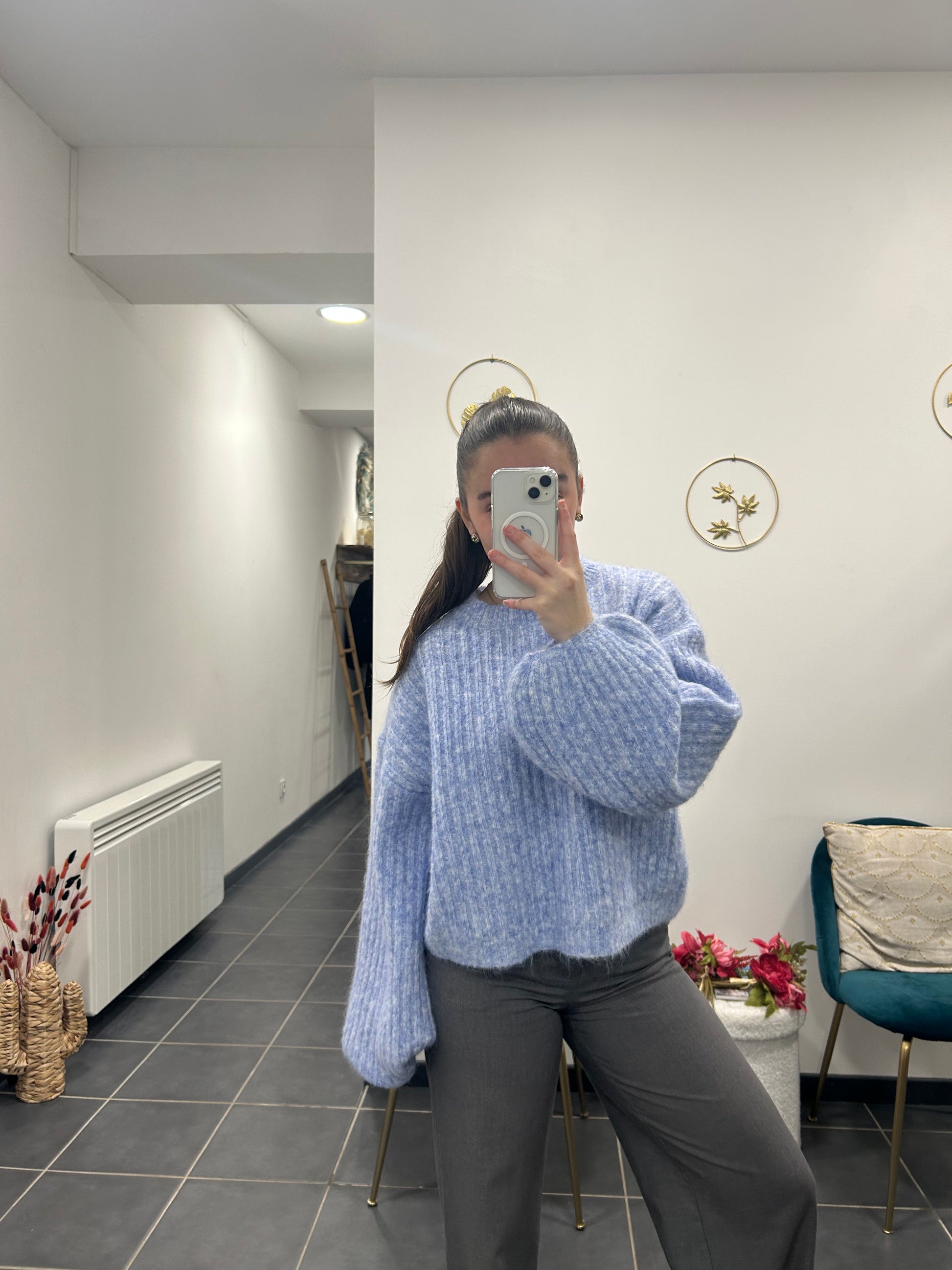Ce pull bleu est un indispensable du dressing. Confortable et facile à porter, il s’adapte à toutes les occasions du quotidien. Sa coupe simple et sa couleur intemporelle permettent de l’associer facilement avec un jean, un pantalon habillé ou même une jupe.